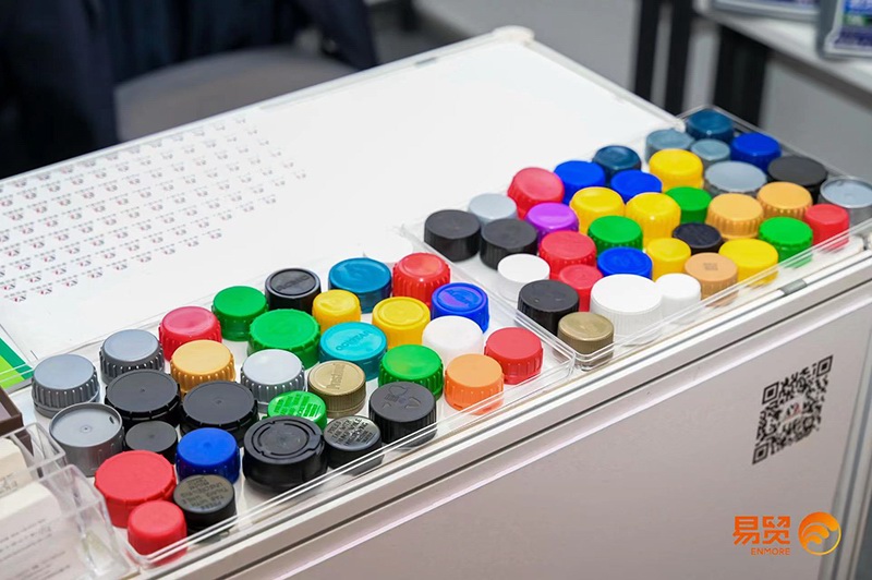 澳亞塑業(yè)展位上陳列的塑料包裝桶及配套產品